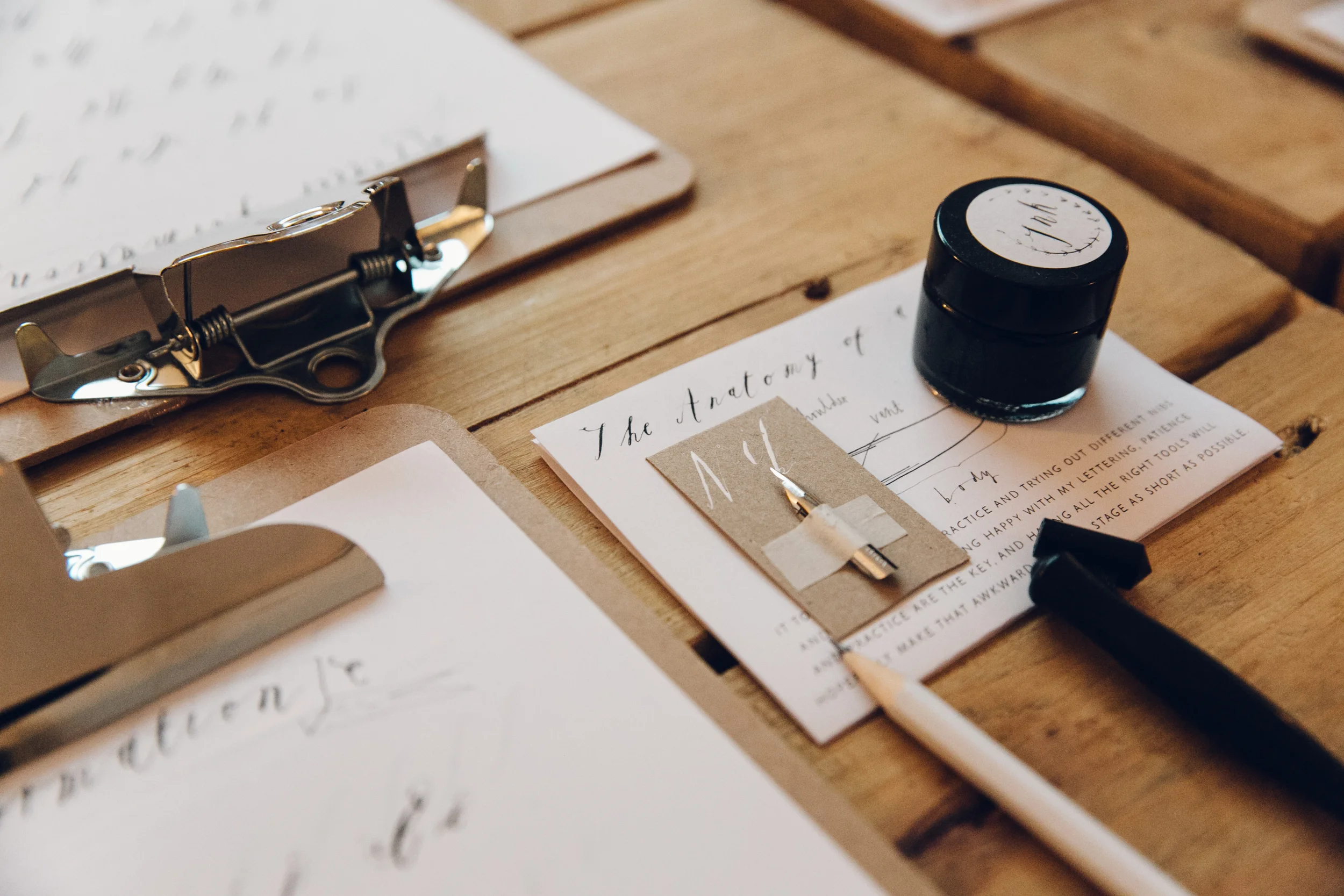 When I started looking into learning Modern Calligraphy in 2014, no such classes existed in London. I had to teach myself with the help of lots of reading on Besotted and Iampeth (look them up they are invaluably wise). I ended up spending a lot of money on the wrong equipment. It still pains me to remember it. And because I couldn't work out if my tools were wrong or whether it was my technique, it took SO LONG to reach a stage where I felt comfortable to offer it as a paid service.